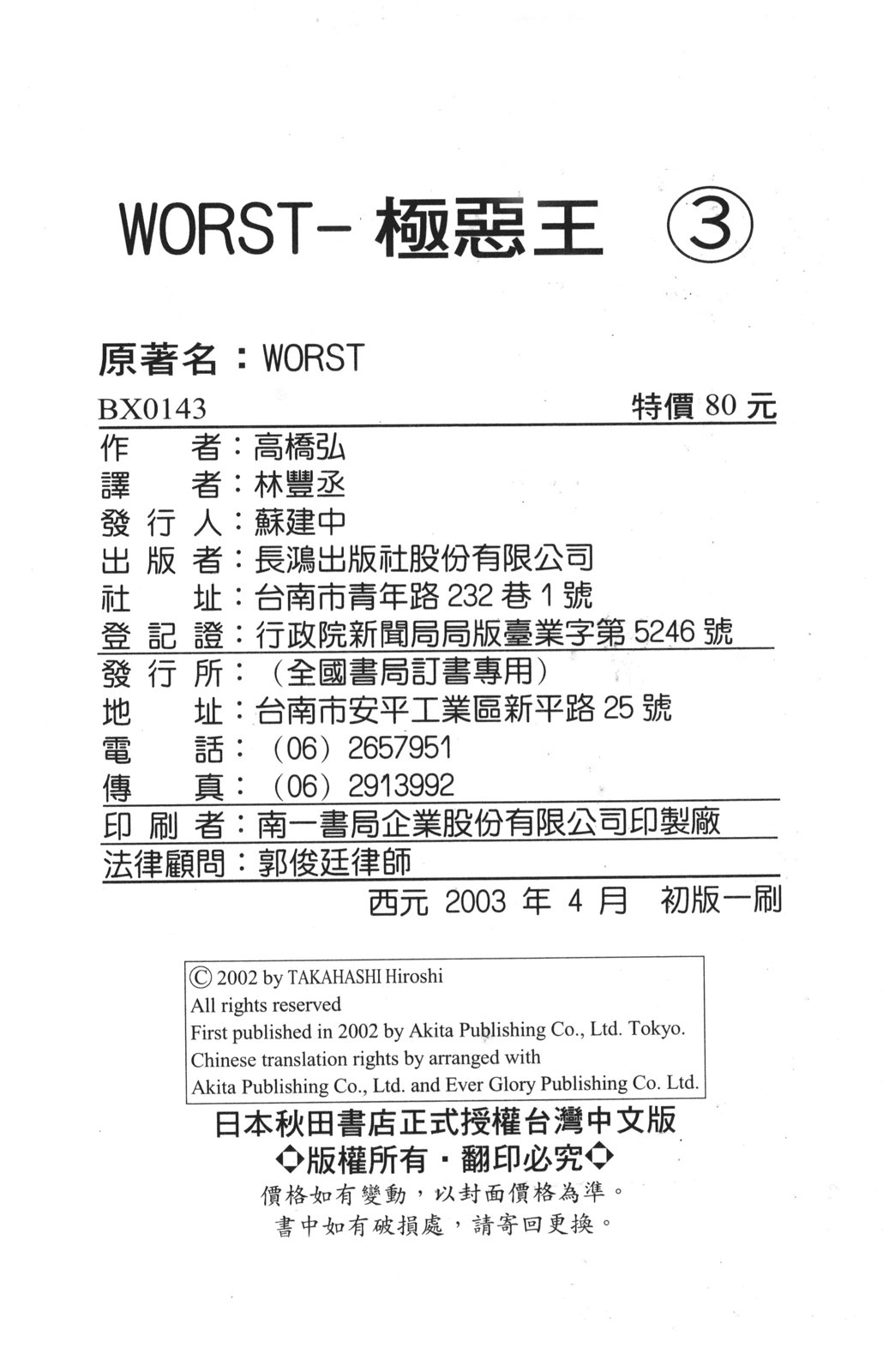 《WORST》目录