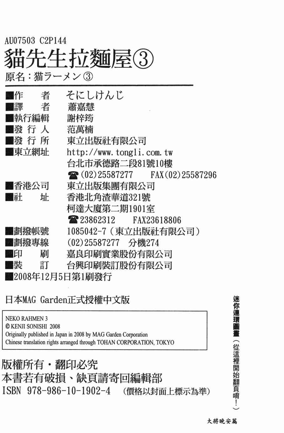 《猫先生拉面屋》目录