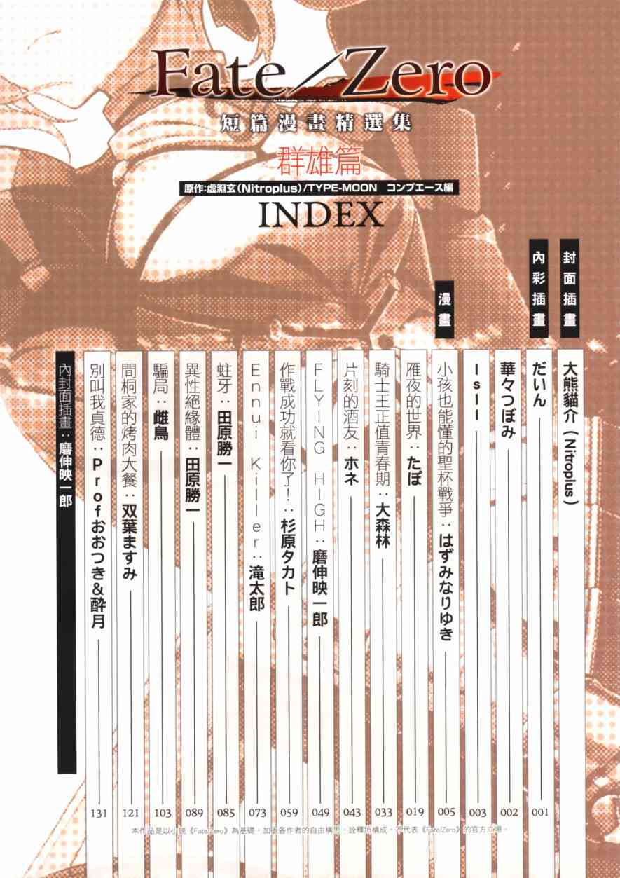 《Fate/Zero 短篇漫画精选集》目录