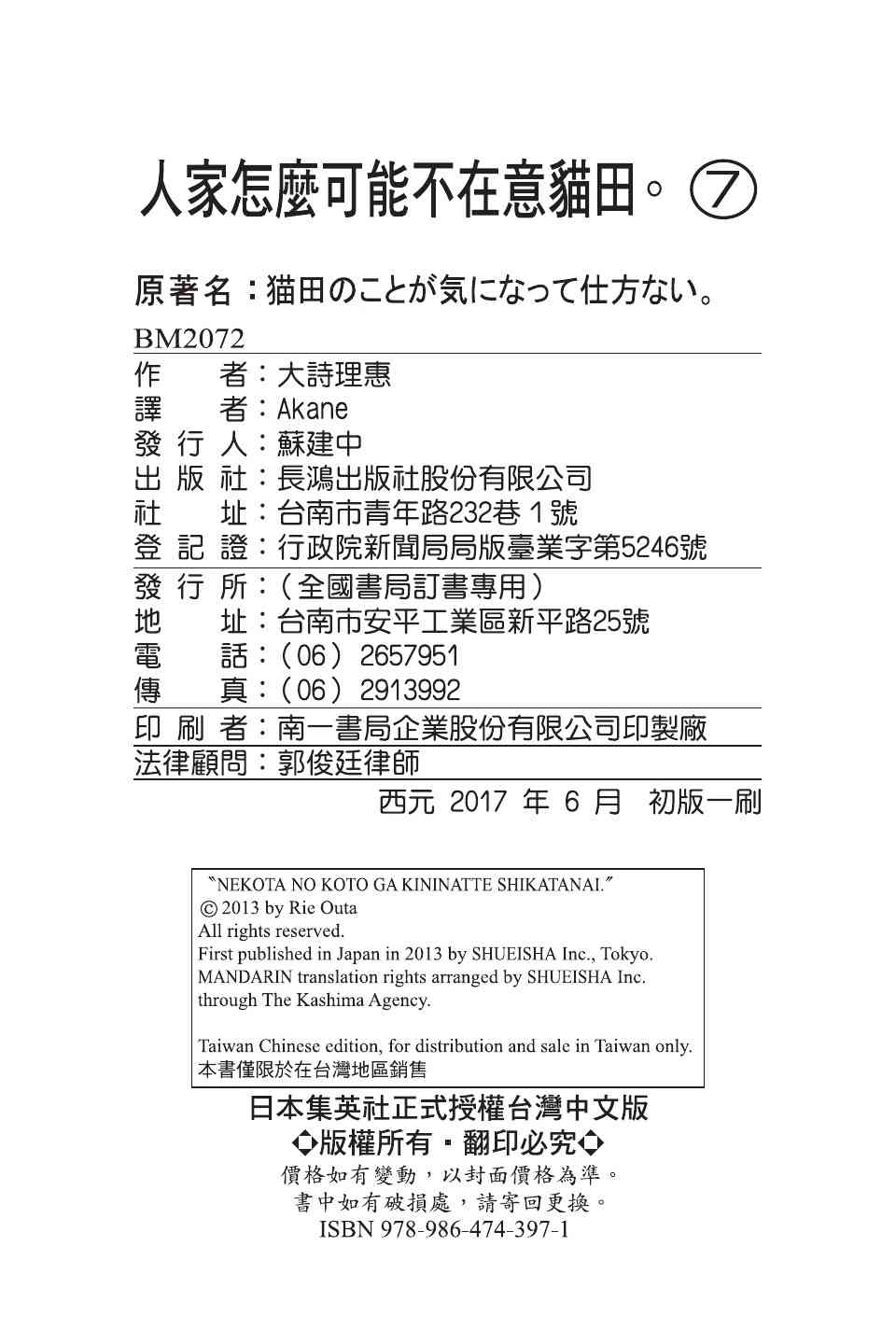 《我好在意猫田。》目录