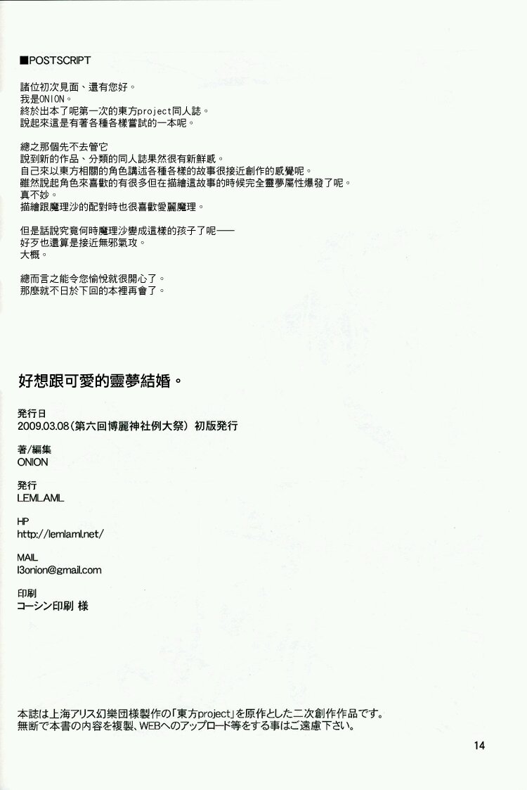 好想跟可爱的灵梦结婚