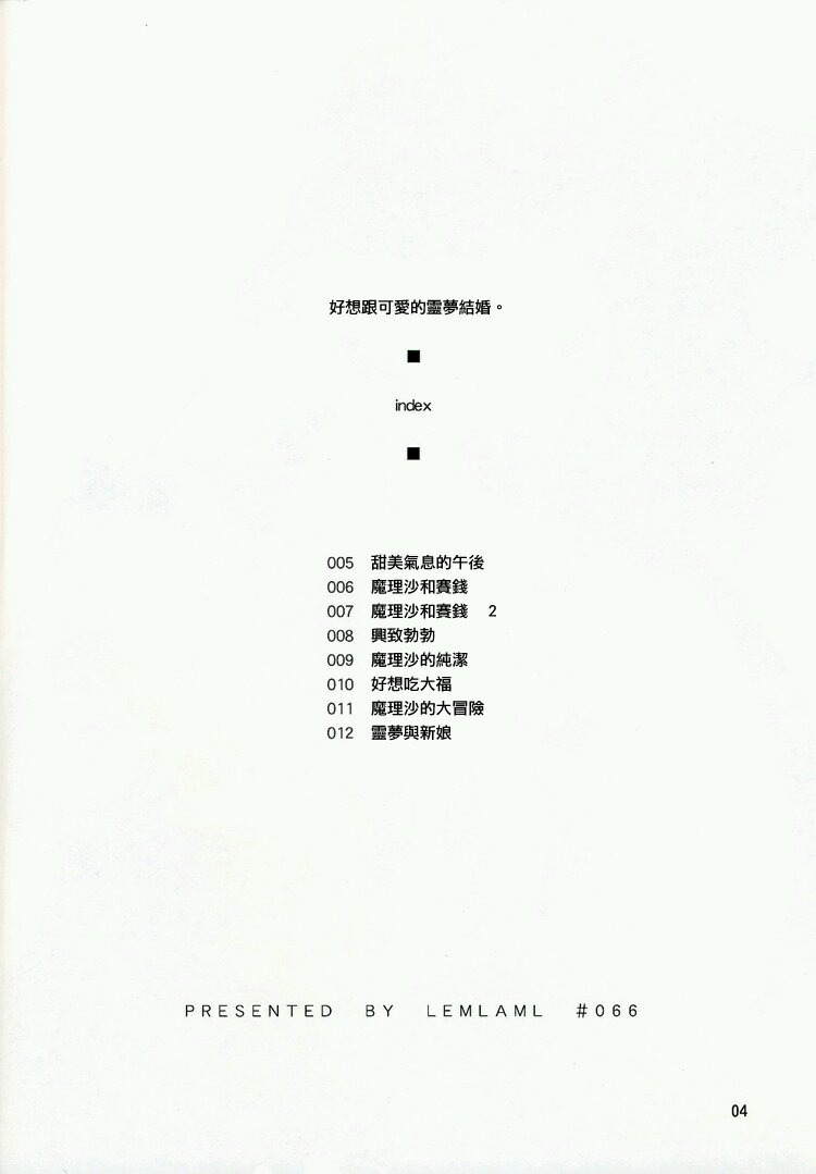 《好想跟可爱的灵梦结婚》目录