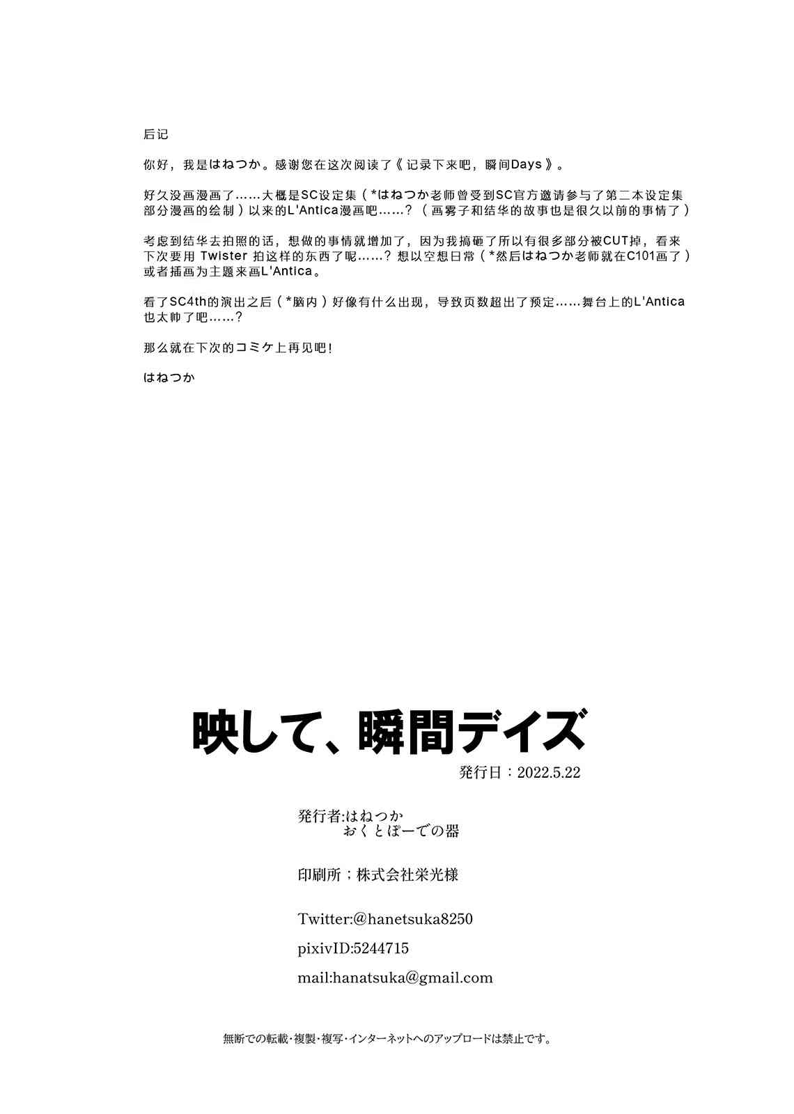 《记录下来吧,瞬间Days》目录
