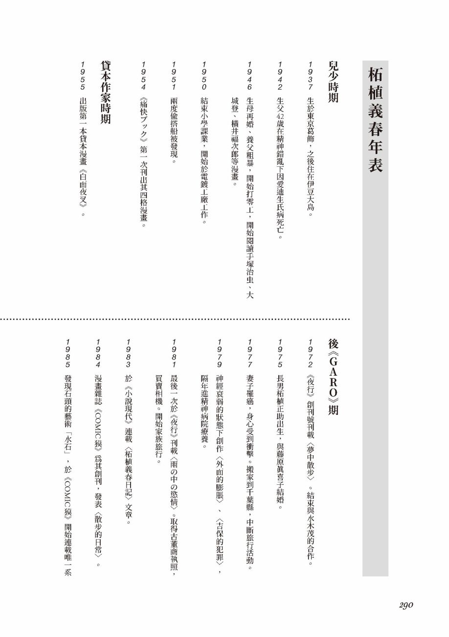 《柘植义春漫画集》目录
